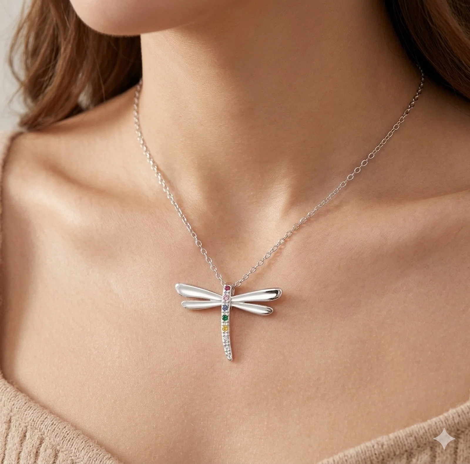 Colier Libelulă din Argint 925 – Simbolul Transformării cu Pietre Multicolore
